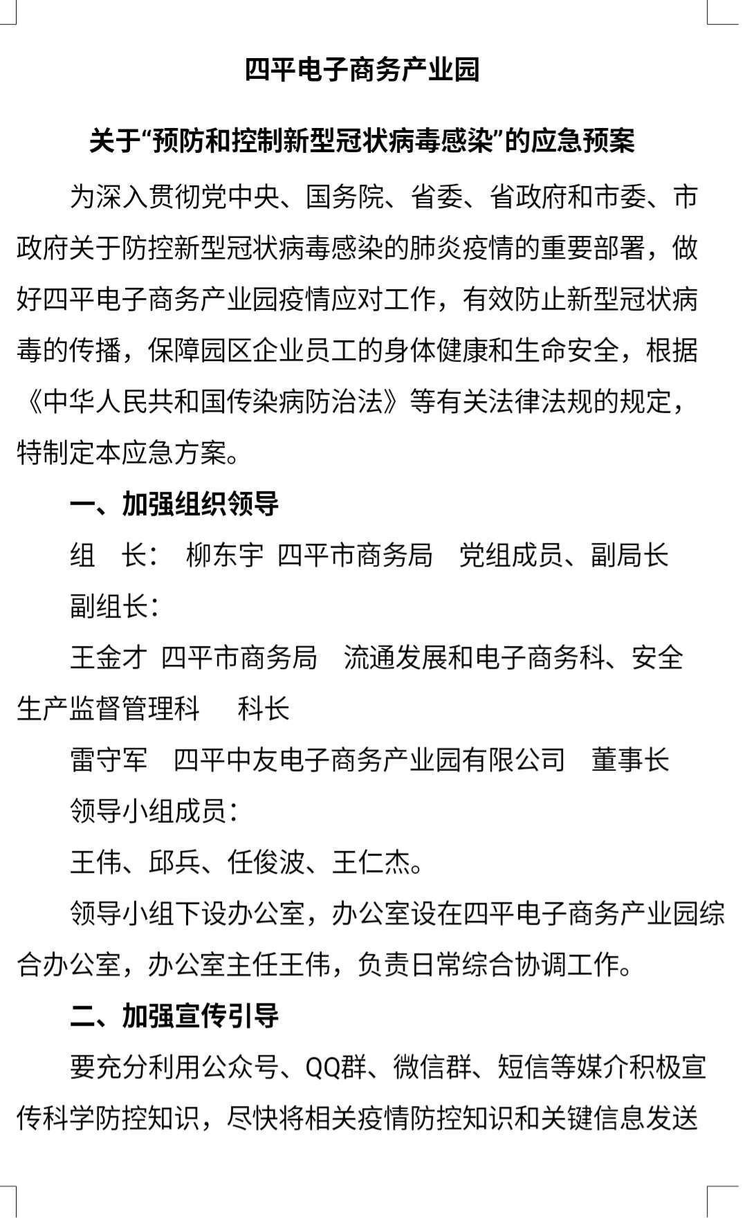 四平電商產(chǎn)業(yè)園疫情方案 望大家執(zhí)行