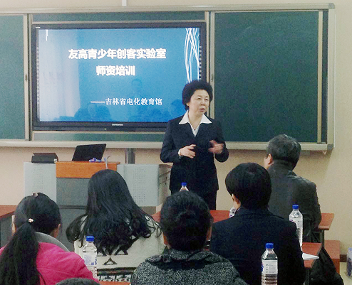 2016年3月28日上午9時(shí)整,長(zhǎng)春市外國語學(xué)校綜合樓的智慧教室集聚了來自長(zhǎng)春市內(nèi)重點(diǎn)中小學(xué)校的科技創(chuàng)客活動(dòng)的老師30余人,應(yīng)邀參加由吉林省電化教育館主辦、吉林中友投資股份有限公司(友高創(chuàng)客活動(dòng)中心)承辦的友高創(chuàng)客實(shí)驗(yàn)室暨吉林省電子信息創(chuàng)新大賽的師資培訓(xùn)活動(dòng)。