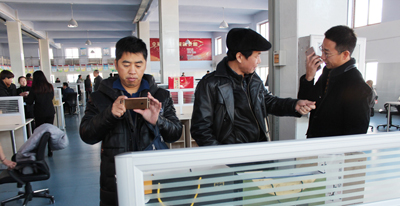 郵樂購負責人對參展產品進行信息采集與交流