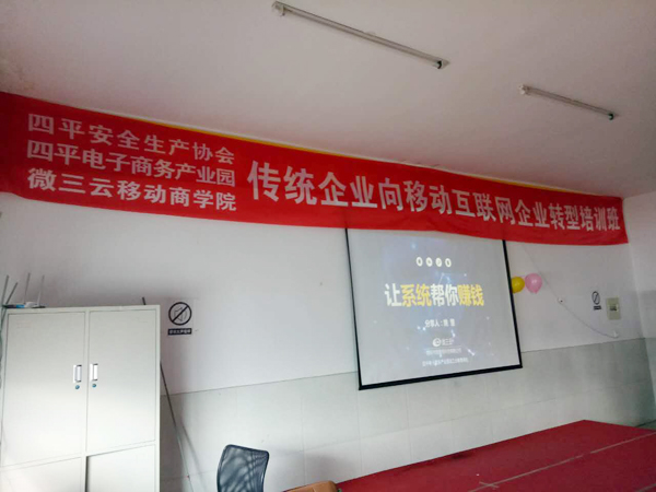 2017年4月15日,由四平電商園攜手四平安全生產(chǎn)協(xié)會、微三云移動電商學(xué)院開展傳統(tǒng)企業(yè)向移動互聯(lián)網(wǎng)企業(yè)轉(zhuǎn)型培訓(xùn)班。